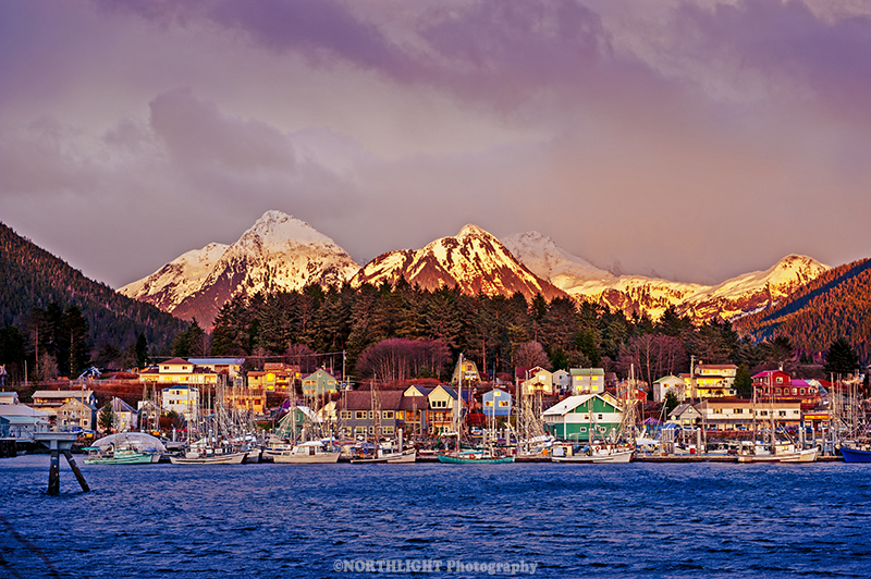 Sitka and The Sisters at sunset