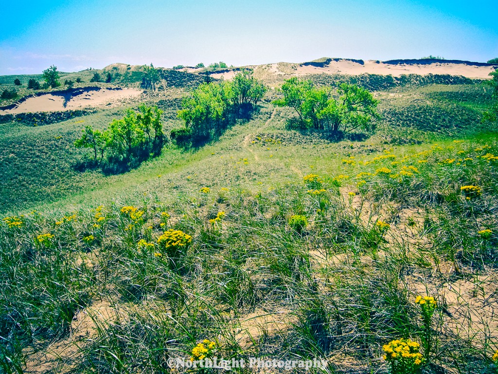 This picture is one of several record during a hike from the Nurnberg road trail through the back-dunes of the Wilderness Area and into wild north end of Ludington State Park, June 2024. The Nordhouse Dunes Wilderness is a 3,450-acre listed wilderness area within the Manistee National Forest. It is located north of Ludington, Michigan, and is best known for its 4 miles of undeveloped Lake Michigan shoreline. The Nordhouse Dunes Wilderness is extremely fragile, and the ecosystem of the area is not found anywhere else in the world.